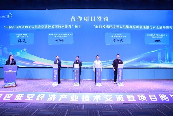 为推进低空经济技术创新,建邺区开放应用场景,鼓励龙头企业牵头,联合高校院所等单位,集中优势力量共同打造科技创新联合体。现场,建邺区联合南京国睿防务系统有限公司、中电信无人科技(江苏)有限公司、南京市气象局、南京航空航天大学电磁频谱研究院、江苏航空产业集团有限责任公司、苏交科集团股份有限公司,共同成立建邺区低空经济创新联合体,推动大中小企业融通发展,推进硬核技术攻关。