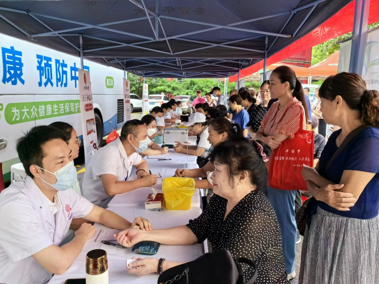 厦门站,健康快车团队为市民群众进行健康检测、脑中风筛查