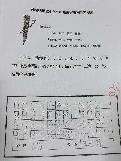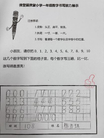 为响应教育部《关于进一步加强中小学规范汉字书写教育的通知》,及落实课标中关于数字书写“正确规范工整”的要求,提升学生的书写习惯和数学素养。10月28日佛堂小学特举办一年级数字书写适应性课程活动。