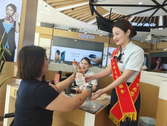 创新开展惊喜化活动,提升服务感知。为提升客户进厅感知,营业厅内常态化设置惊喜推车,为客户提供报纸、矿泉水、糖果等物品,还有免费手机充电、应急药品、免费WIFI等便民服务。厅内还专门设置了“爱心座椅”,为老年客户和户外工作者提供便利。东昌东路营业厅青年文明号结合传统节日,定期组织开展惊喜化活动,让客户在办理业务的同时,体验传统节日文化魅力。营业厅内设“青年文明号”专席,公开服务承诺和咨询、投诉渠道,擦亮“青年文明号”金字招牌。