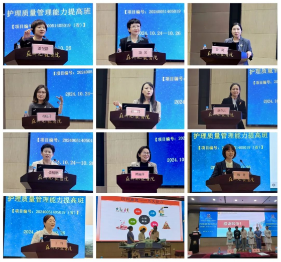 本次培训班特邀潘奎静副院长、上海交通大学袁晓玲副教授、苏州大学附属第一医院徐岚主任、苏州大学附属第二医院谭丽萍主任、苏州市立医院蒋玲主任、徐州仁慈医院韩芹主任、南京鼓楼医院集团宿迁医院赵春云副主任等多位知名护理管理专家围绕“质量、专科、标准、发展”进行授课。