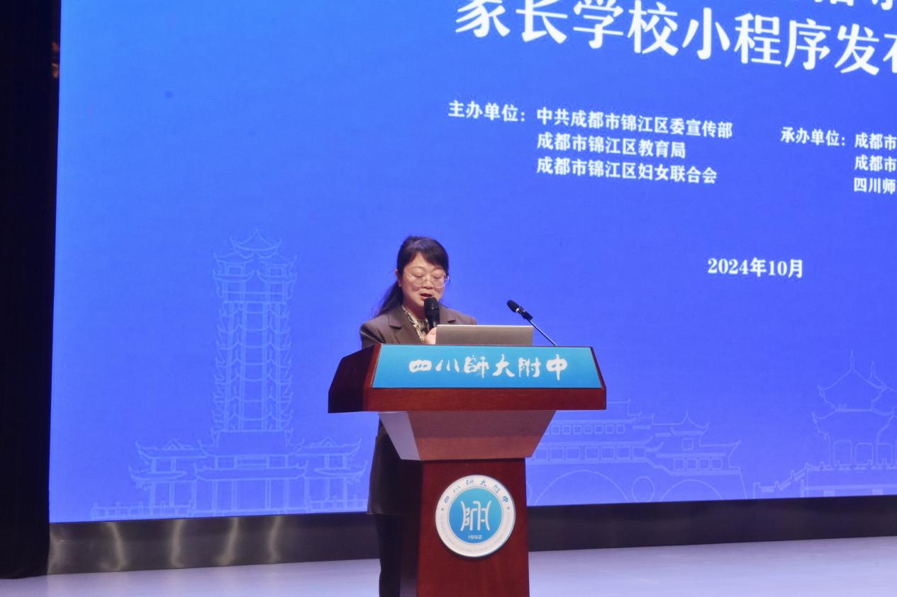 “合抱之木,生于毫末;九层之台,起于累土。”家庭教育是一切教育的根基,在人的发展中起着奠基性、根本性的作用。为进一步落实《成都市关于指导推进家庭教育的五年规划(2021-2025)》《锦江区家长学校建设工作方案》的要求,推动锦江区家长学校建设,提升区域家庭教育水平,10月31日下午,由中共成都市锦江区委宣传部、成都市锦江区教育局、成都市锦江区妇女联合会联合主办,成都市锦江区家长学校、成都市锦江区社区教育学院、四川师范大学附属中学承办的锦江区第八期“家庭教育指导员”培训开班暨家长学校小程序发布仪式在四川师范大学附属中学初中部顺利举办。全区各中小学、幼儿园、各街道、社区家长学校500余名参培学员及教师、家长代表参加了本次开班仪式。