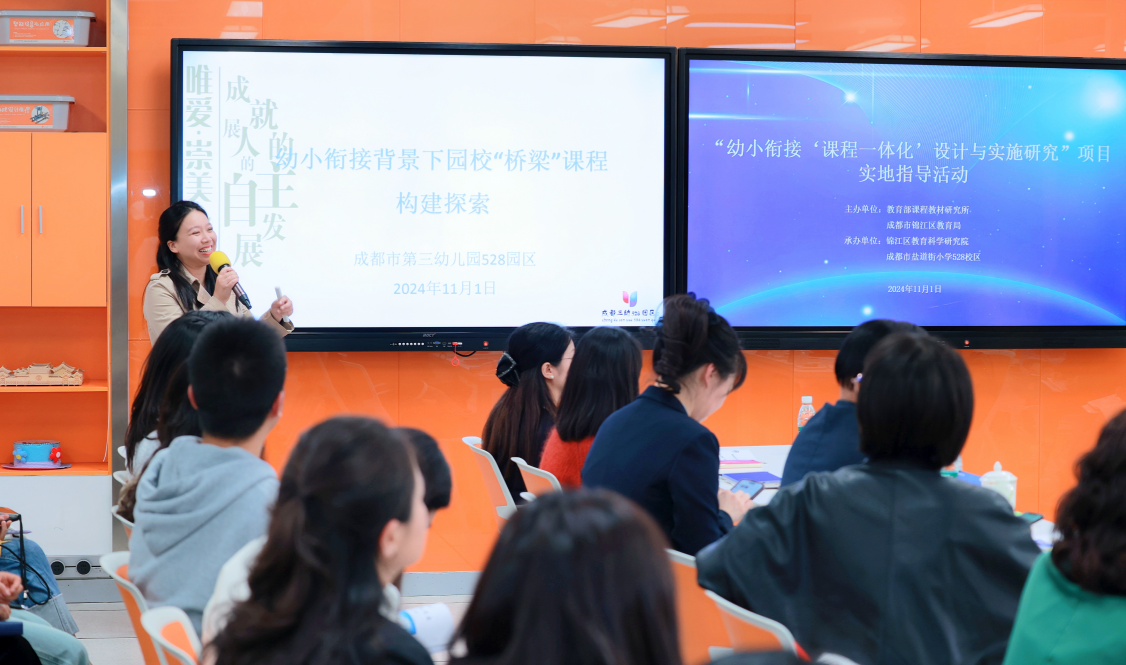 为深入贯彻教育改革精神,促进幼儿园与小学教育的无缝对接,提升教育质量和效果,2024年11月1日,课程教材所专家团队在成都市盐道街小学和成都市盐道街小学528校区开展了“幼小衔接‘课程一体化’设计与实施研究”项目阶段实地指导活动。活动由课程教材所的专家团队领衔,锦江区教育局、锦江区教育科学研究院、成都市盐道街小学、成都三幼等项目校成员共同参与,通过观摩、课例展示、汇报交流等形式,探讨幼儿园与小学教育的“衔接课程”与“课程衔接”。