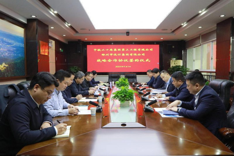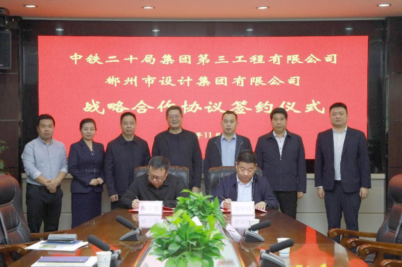 11月1日,郴州市设计集团与中铁二十局集团第三工程有限公司签署战略合作协议,携手推进战略合作全面开展。