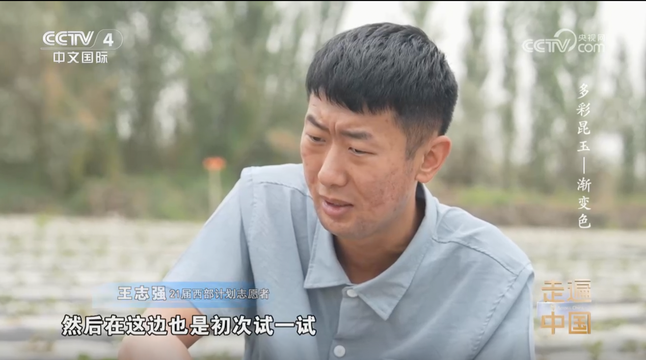 向沙漠要绿洲、让戈壁产硕果,在昆玉,几代人创造了“人进沙退”的人间奇迹。如今新一代年轻的昆玉人正在不断引进新的绿色,让昆玉的绿变的更加多样化。王志强,是大学生志愿服务西部计划的一名志愿者。2023年,为了改变当地单一的红枣种植结构,王志强自己开垦了30亩地,从云南引进红薯,做标准化红薯种植的示范田。