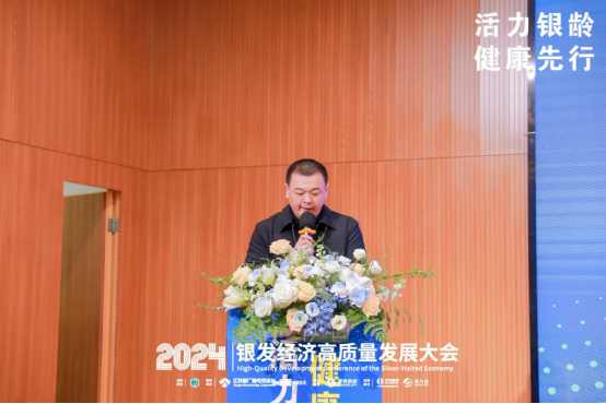 随着大会的进行,江苏省广播电视总台综艺频道总监张烨镝先生就企媒合作,助力银发经济话题发表主题演讲《企媒共创,赋能银发经济发展》,他指出:“活力银龄,健康先行;活力银龄,媒企同行。江苏综艺频道和享佳集团将不断加强跨界合作,发挥各自优势,凝聚各方力量,积极构建各方共建共享的银发经济生态,让更多银发人群能够老有所养,老有所依、老有所得、老有所安!”
