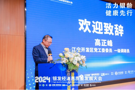 江宁开发区党工委委员、一级调研员高正峰在致辞中表示:“希望通过本届大会,可以扩大银发经济发展的‘朋友圈’、‘生态链’,推动银发经济高质量发展,为银发人群提供‘备老、适老、养老’的优质健康服务。”同时他还表示,享佳集团在江宁区深耕银发产业17年,已经成为银发经济产业的标杆企业。