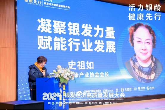 江苏省健康产业协会会长史祖如在大会上以《凝聚银发力量,赋能行业发展》为题发表演讲,她指出:“银发群体不仅是消费者,更是我们宝贵的资源;不仅是银发经济的受众者,更是指挥官!我们要深入挖掘银发经济的潜力,发挥银发群体的优势,让他们成为行业的参与者与推动者。”