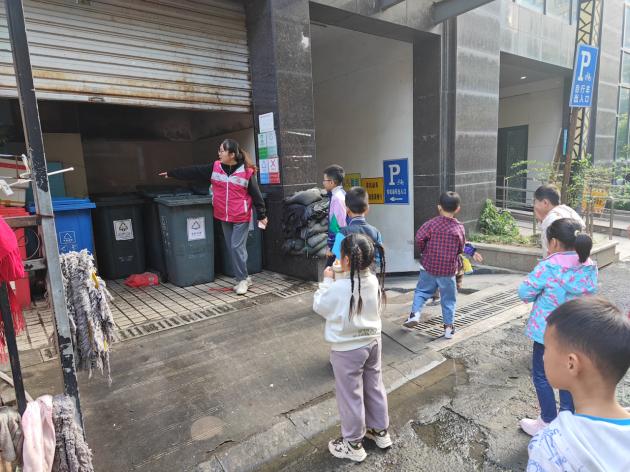此外,活动还组织小朋友实地参观了社区的垃圾房,详细了解了垃圾分类的具体操作和注意事项。通过实地查看和工作人员的讲解,小朋友对垃圾分类有了更加直观和深入的认识,纷纷表示将积极践行垃圾分类,为社区环境贡献自己的力量。
