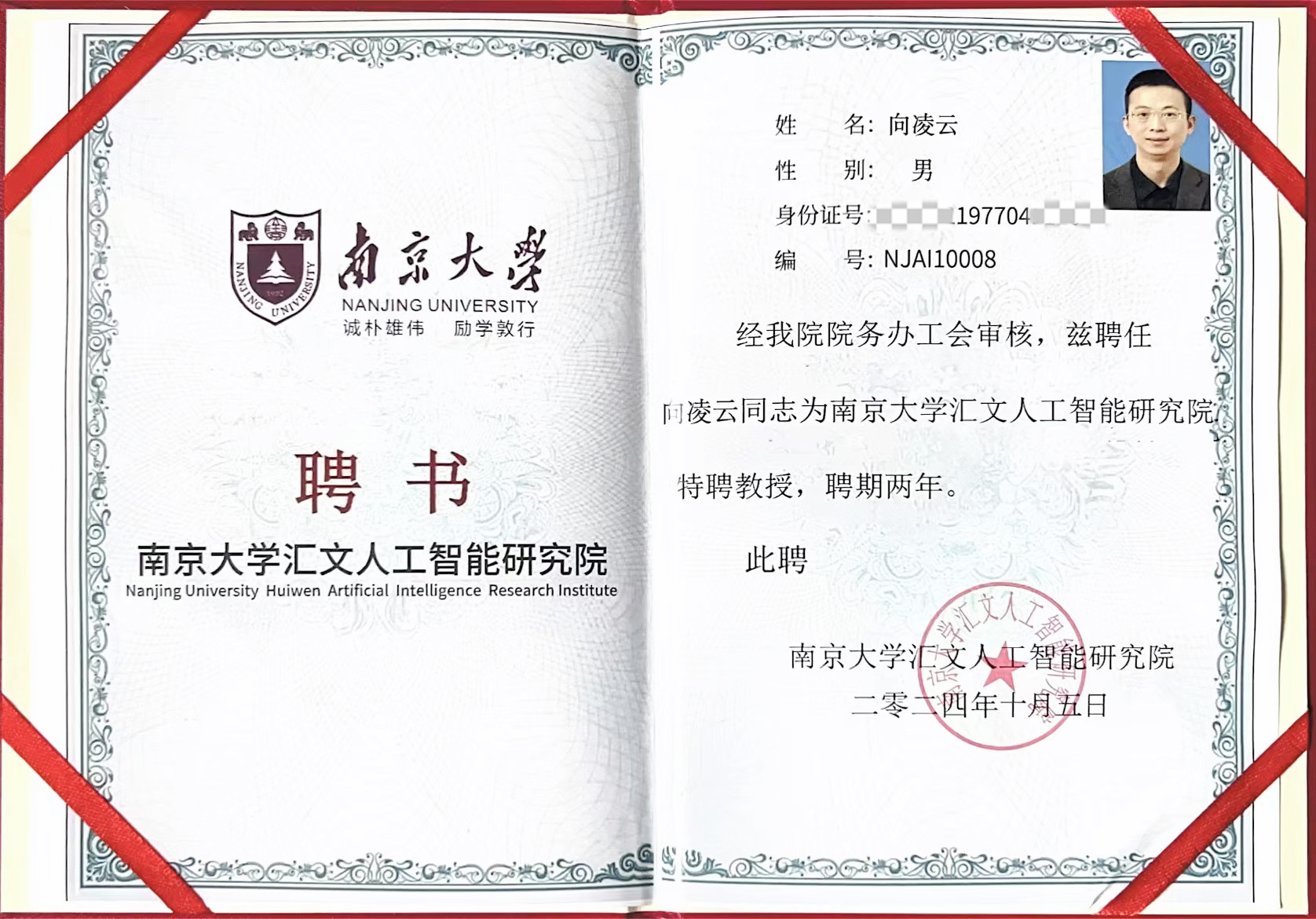 近日,南京大学汇文人工智能研究院聘请向凌云同志为特聘教授。