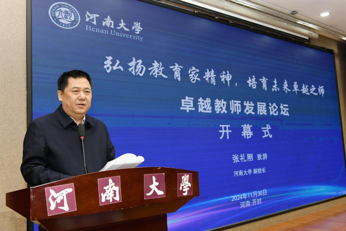 张礼刚在致辞中表示,河南大学在卓越教师培养方面既有着悠久的文化历史基础,也蕴含着千载难逢的发展契机,更面临着前所未有的发展机遇。未来,面向教育强国的卓越教师培养,应坚持以教育家精神涵养教育情怀、厚植教育信念、锤炼教育品质;坚持以多学科交叉融合拓展教育视野、开阔教育眼界、提升教育格局;坚持以创新性教研追求卓越、成就不凡、铸造辉煌。