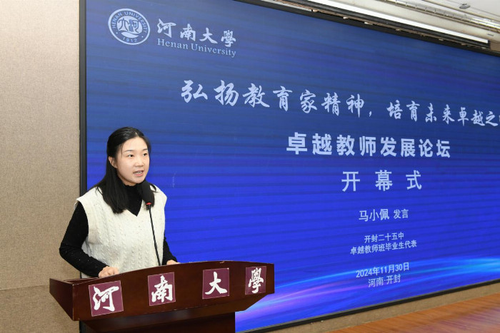 马小佩结合自身的学习经历和教学经历,肯定了卓越教师班在促进师范生核心素养发展方面所发挥的重要作用。她指出,河南大学卓越教师班不仅是一个班级的名称,更是一个追求卓越、勇攀高峰的精神象征;不仅是一个学习平台,更是成长的未来。