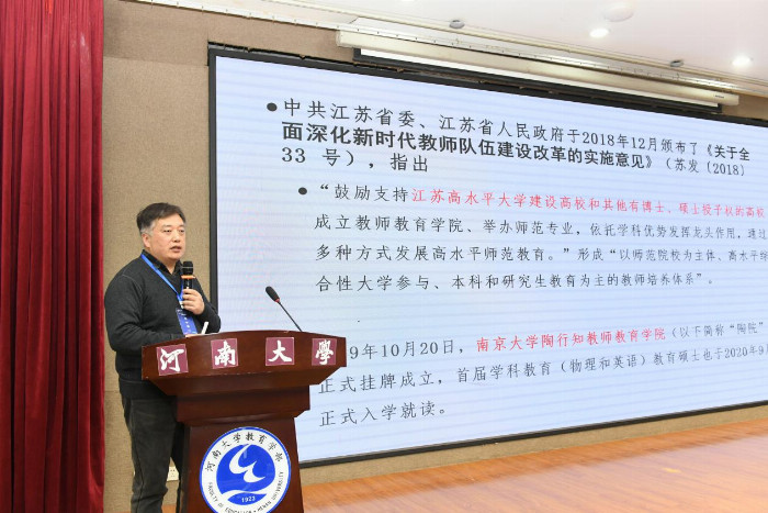 张会敏首先代表省教育厅教师工作处对与会专家的到来表示衷心的感谢。他指出,河南省历来高度重视教师队伍建设和师范生培养工作。当前,站在教育强国建设新征程上,高校应积极发挥龙头作用,培养卓越教师,赋能教育高质量发展。对此,他提出三点期望:一是将教育家精神贯穿卓越教师培养的全过程。二