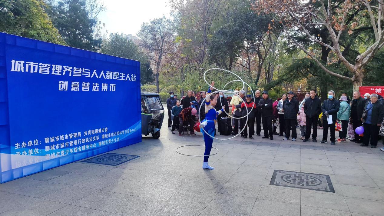 当日上午,在聊城市民法典主题公园(位于聊城市人民公园),一场以“城市管理齐参与,人人都是主人翁”为主题的创意普法集市热闹“出摊”。