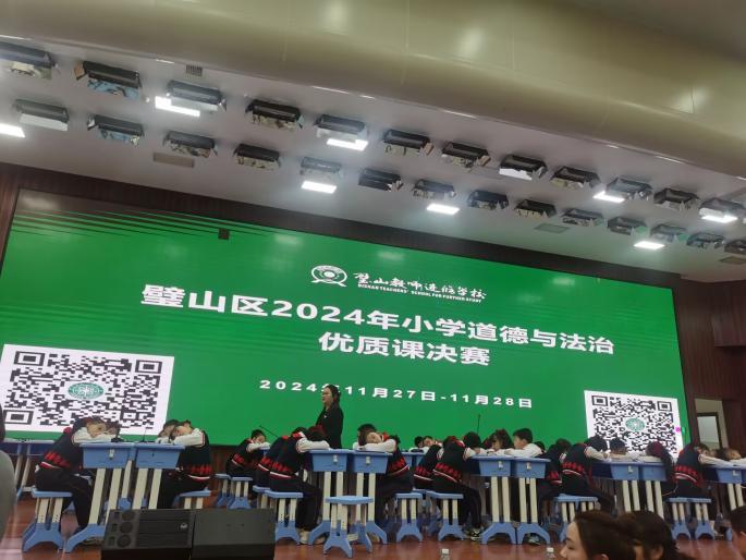 11月下旬,成都市娇子小学教导处主任谢云静和道法专职教师受邀参加在结对子学校璧山区御湖小学举行的璧山区2024年小学道德与法治优质课决赛活动。此前,双方学校就参赛课例进行了深入研讨,御湖小学的课例也成功进入决赛。每半天活动结束后,娇子小学交流人员都与璧山区道法教研员李老师进行深度研讨,在活动中有效促进了双城教育领域道德与法治学科的融通。
