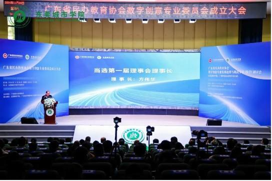11月30日,广东省民办教育协会数字创意专业委员会成立大会在东莞城市学院隆重召开。受广东省民办教育协会会长赵康委托,常务副会长张耀荣,协会秘书长、办公室主任朱祖胜,与东莞城市学院领导共同组织主持成立大会活动;筹备组牵头单位东莞城市学院党委书记章德胜、执行校长方伟华,副校长康贤刚、李振华,湛江科技学院副校长罗如学;全省民办高校相关领导及其艺术设计、创意设计等二级学院院长、骨干教师等共计120多人出席会议。大会特别邀请相关学科专业的专家学者出席大会指导,他们是:浙江大学二级教授,教育部动画、数字媒体教指委副主任耿卫东;杭州电子科技大学教授,教育部动画、数字媒体教指委委员王毅刚;中国传媒大学教授,中共中央、国务院“突出贡献个人”称号获得者沈皛;广州美术学院教授,广东省动画、数字媒体教学指导委员会秘书长廖向荣;河北美术学院数字艺术学院党委书记、院长,教育部高等院校评估专家姜仁峰;河北传媒学院数字艺术与动画学院常务副院长邵辉;湖南师范大学教授、硕士研究生导师,广东省数创技术研究院常务副院长、鼎铭控股有限公司董事长白东林;湖南师范大学教授、中国注册高级室内建筑师、湖南省设计家协会数字媒体艺委会副主任,湖南美创数字科技有限公司联合创始人胡国梁。