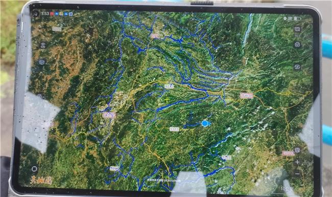 随着工作人员手指放大,在平板上可以清晰观测到水域岸线与涉河建筑的关系情况。程永睿说,“2018年开展河道划界工作以来,盘州市逐渐完善河湖管理范围‘红线’,为日常监管河湖水域岸线提供了重要技术支撑。”