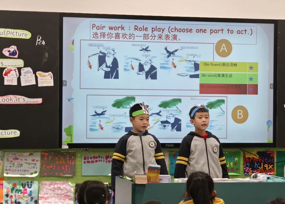 李晓琴老师执教外研版新启航英语一年级上册Unit3 Colours (Lesson2)。课堂上,1.2班的花娃娃们在真实的学习情境中围绕“We live in a colourful world.”这一主线,通过角色扮演、汇报交流等一系列丰富的学习活动中“寻找身边的颜色、感受多彩的世界”,体会到与同伴交流和英语学习的快乐。