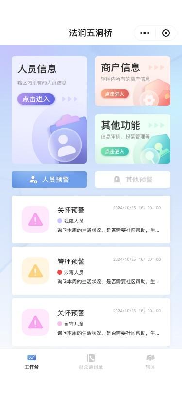•专为网格员开发的工作台功能,支持数据录入与实时更新。