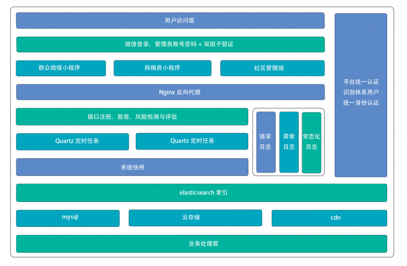 基于社区实际需求,搭建了覆盖小程序端、后台管理端及大数据展示模块的功能架构,确保平台兼具实用性与可扩展性。