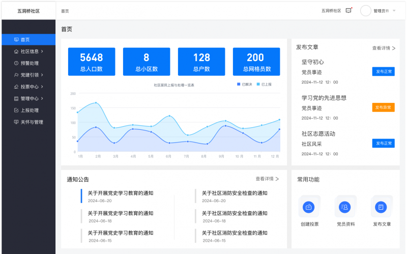 •具备全面的数据管理功能,包括房屋信息、特殊人群关怀、商户管理等。