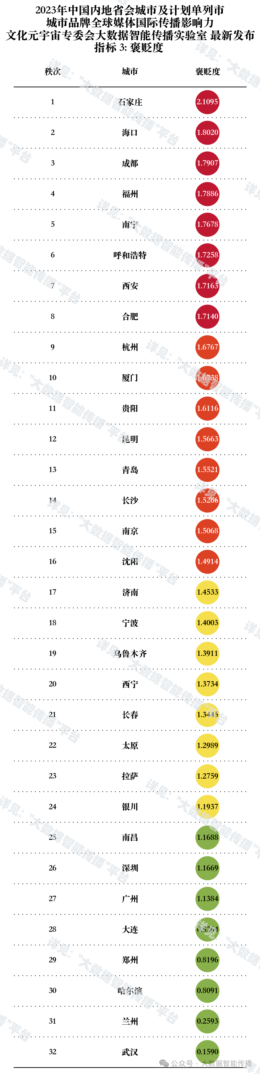 中国内地省会城市及计划单列市城市品牌全球媒体国际传播影响力报告