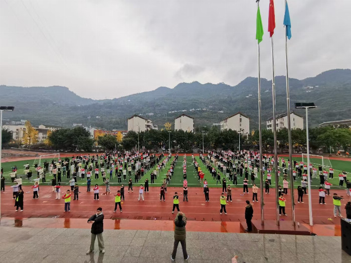 校园文化是学校发展的灵魂,四川轻化工大学体育学院在帮扶过程中注重书楼中学校园体育文化的建设与培育。从校园环境的优化到校园精神的塑造,帮扶团队都精心策划、悉心指导。2024年12月他们协助书楼中学打造了具有学校特色和文化底蕴的校园大课间,内容既有传统元素,也融入了现代舞蹈元素,为学生们提供了展示自我的舞台,培养了他们的团队合作精神和综合素质,营造了积极向上、充满活力的校园体育文化氛围,使校园成为学生们成长的乐园和精神家园。