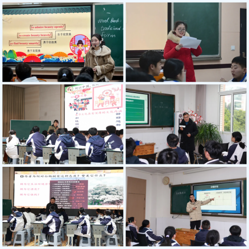 来自共同体学校的14位老师共同参与语文、数学、英语学科同课异构活动。在语文课《白杨礼赞》上,老师们或以别具一格的开场,创设情境,入境生情,或以活跃的课堂氛围,朗读渲染,以声传情,抑或由浅入深的课堂结构,层层递进,精彩纷呈,做到了知识与结构的扎实构建,情感与表达的双重共鸣,使学生既在情感上受到触动与熏陶,又在知识与能力上得到切实的提升,达成了语文教学中工具性与人文性的统一。在数学《有理数的乘法法则》活动中,老师们或凭借丰富的教学经验,以生动有趣的情境导入课程,也巧妙运用现代教育技术,将抽象的数学概念直观地呈现,充分激发学生的学习兴趣与好奇心,或通过小组合作学习的方式,引导学生自主探究数学问题,在互动交流中深化对知识的理解与掌握,课堂气氛活跃而有序。英语课What Are the Shirts Made of?Section B 2a-2e上,老师们精心准备,各展风采,虽然教学内容相同,但教学思路、方法和侧重点却各具特色,有的老师以生动有趣的导入环节迅速吸引了学生的注意力,引导他们积极参与课堂互动,有的老师则注重对教材知识点的深度挖掘,通过巧妙的问题设置,启发学生自主思考,还有的老师充分利用多媒体资源,创设了丰富真实的语言情境,让学生在情境中感受英语的魅力,提升语言运用能力。每一堂课都以新课标理念为指导,展现了英语教师扎实的教学基本功和对新课标的深入钻研,为在场的老师们提供了不同视角下的教学范例。在接下来的教研活动中,老师们分语文、数学、英语、道德与法治和历史,物理和化学五个学科,分别开展深度研讨,有对同课异构的热烈探讨,有学科微讲座,有外出学习回校汇报,也有初三中考备课策略研讨,老师们还从课程搭建、课题呈现、作业设计、教研开展以及教师成长等方面开展研讨,气氛热烈,干货满满。稠州中学各学科组长分别到场指导,和老师们分享了提高教育教学质量的路径:课堂从反思到重构,要从课堂主导者转为学习促进者,教育理念与教学方式的更新,从理论到实践,要与学生生命同源,与学生课堂共情。