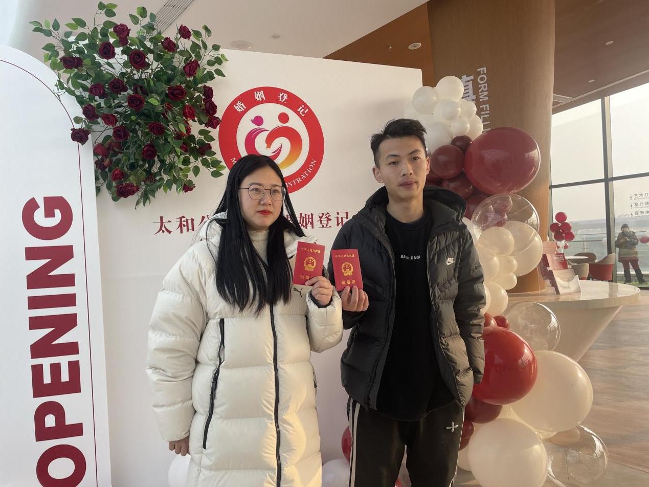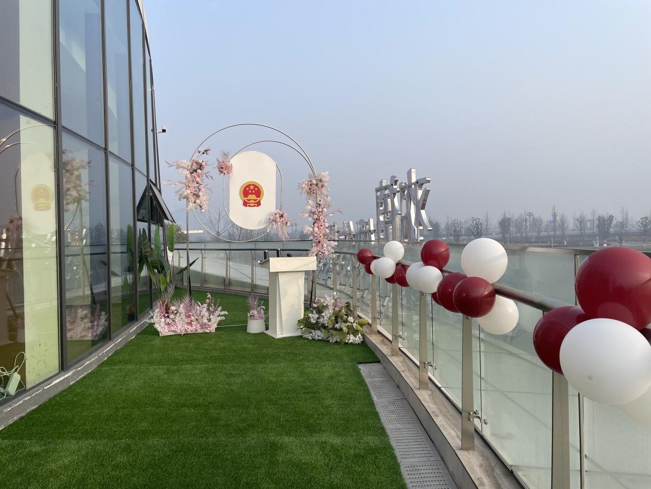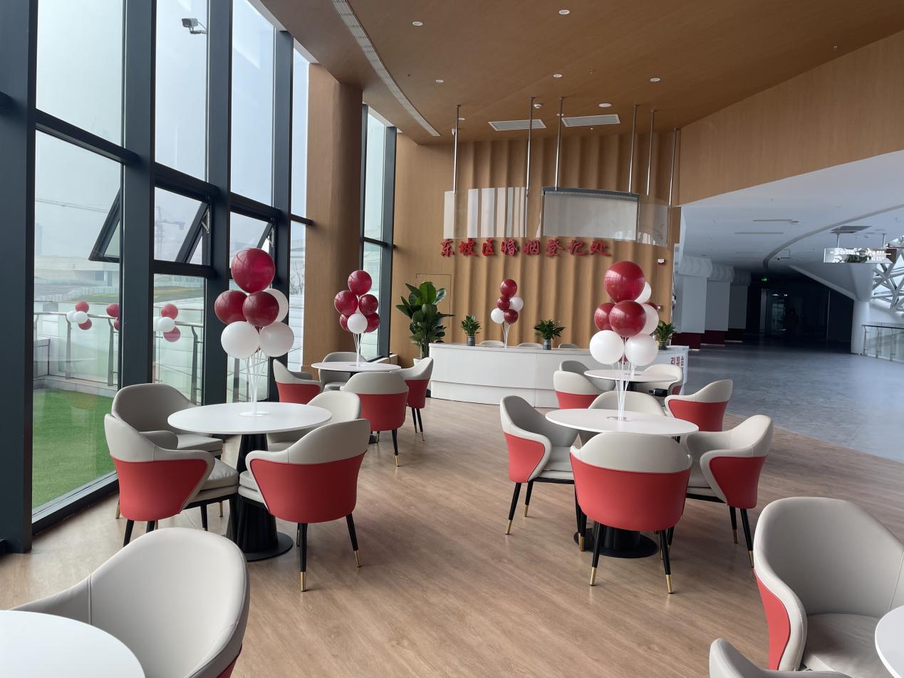 前来领证的新人赵建平说:“这里环境比较漂亮,各项服务设施也比较完善,工作人员也很热情周到,体验感很好。”