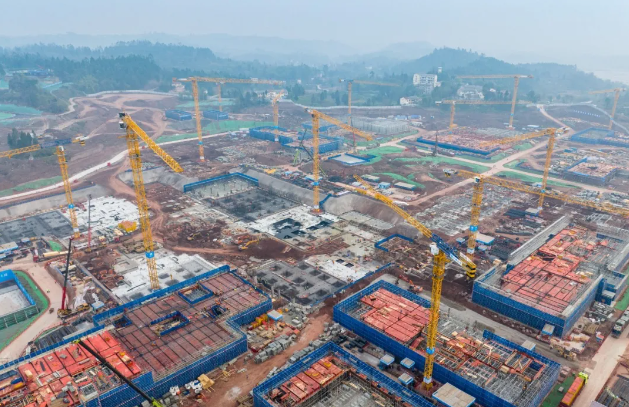在广安理工学院项目建设现场,21台塔吊和百余台施工机械不停运转、2300余名工人各司其职,一派繁忙景象。随着现场最后一车混凝土的浇筑,项目施工方提前完成了首栋建筑19号楼主体结构封顶节点目标,标志着广安理工学院19号楼主体工程全面完工,也标志着该项目建设取得阶段性成果。