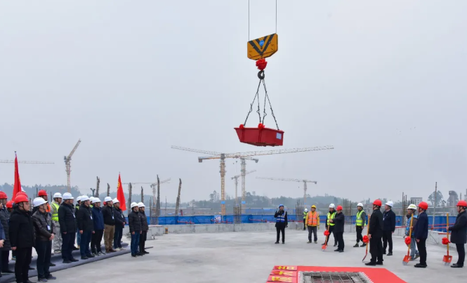 截至目前,该项目施工人数已达2300余人,浇筑混凝土6万余方。张成桂表示,以此次重要节点为契机,接下来他们会在保证安全和质量的前提下,高标准完成后续建设任务,实现项目“2025年6月30日主体封顶、9月30日竣工验收”的整体目标。