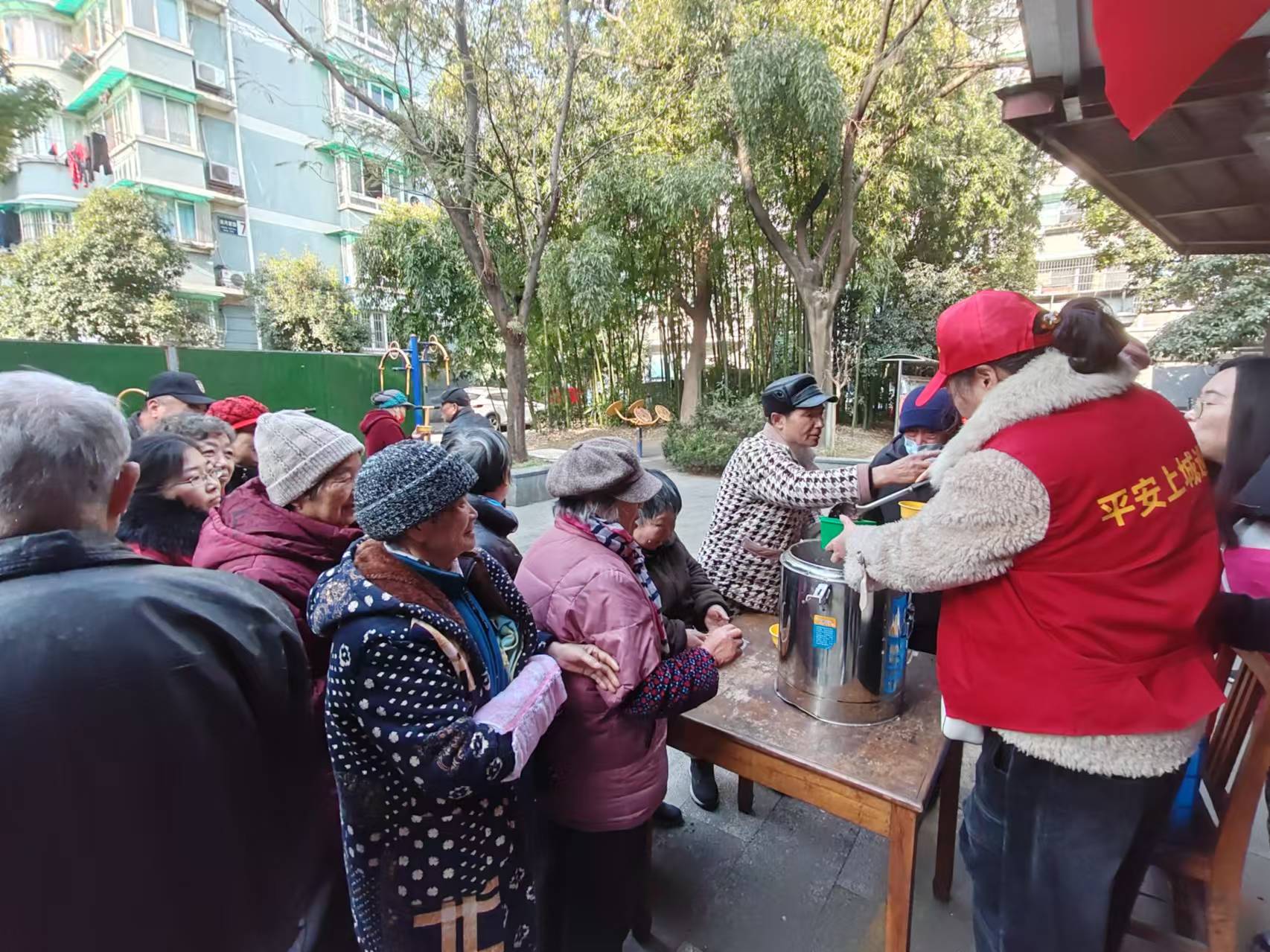 社区工作人员和巾帼志愿者们早早地便开始忙碌起来,端出一锅锅香气四溢、温暖人心的腊八粥,包含了传统的糯米、红枣、莲子、花生等食材,还融入了社区对居民们的深情厚意,每一口都散发着浓浓的温情。