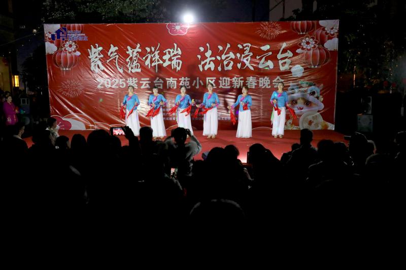 不仅是白天的法治文化活动,当天晚上,在小区举行的“紫气蕴祥瑞、法治浸云台”迎新春文艺晚会也让小区居民在享受文艺大餐的同时,接受了法治教育。