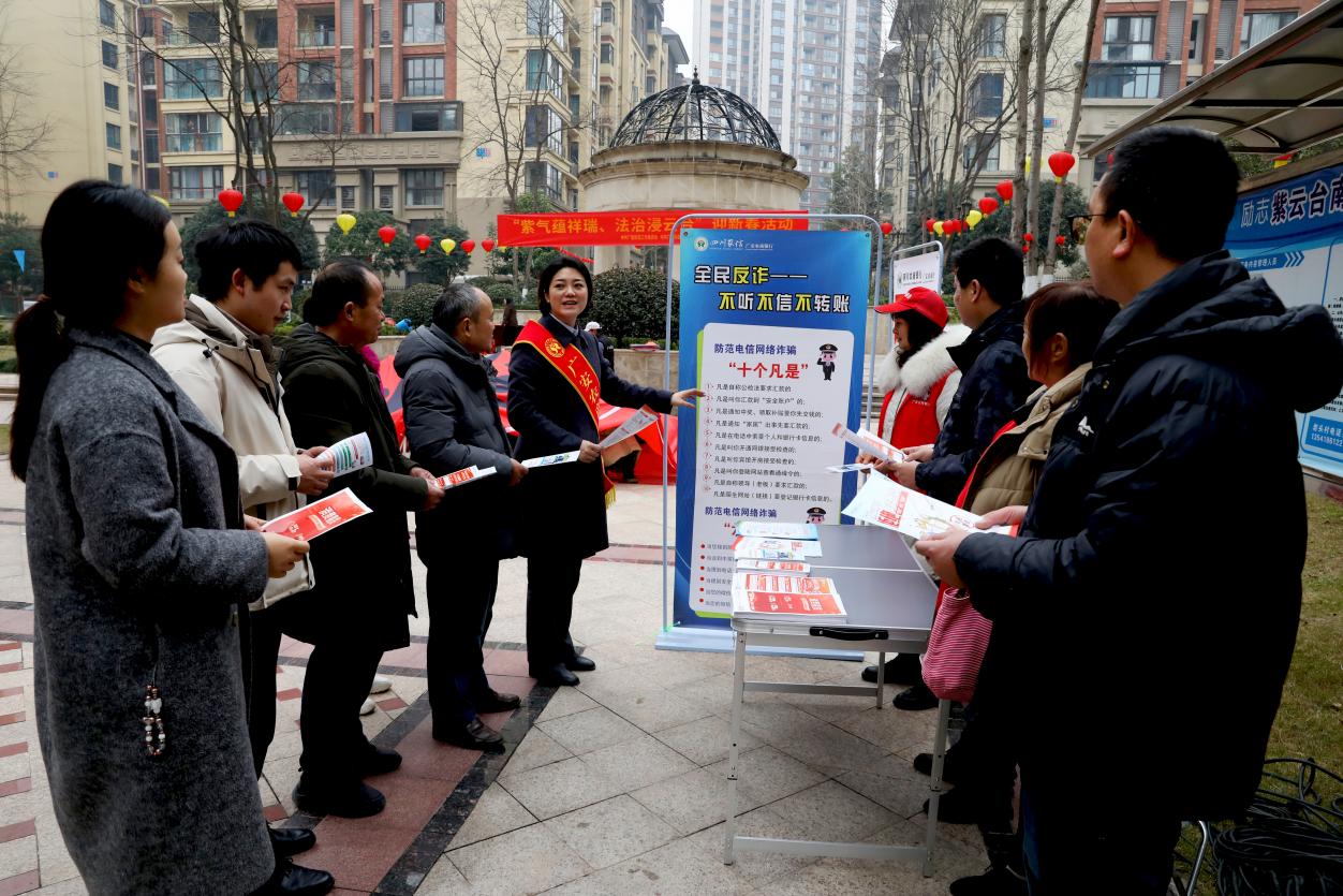 春节即将来临,返乡群众增多。广安区广福街道岩头社区党委结合开展法治小区创建,联合广安区司法局、农商银行、广安区政协诗书画院等单位在紫云台南苑小区举行“紫气蕴祥瑞 法治浸云台”迎新春活动,1月22日下午,除组织法治志愿者开展反电信诈骗宣传和防范非法集资宣传外,还组织剪纸艺术家教小区居民和儿童剪法治窗花,邀请书法家写法治春联和福字,组织小区居民开展“与法同行 托起幸福”亲子趣味运动,在小区营造了浓郁的法治氛围。