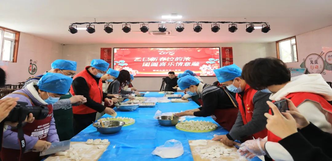 活动现场,大家热情似火,分工明晰且配合默契。揉面者双手翻飞,面粉在掌心奇妙蜕变,化为细腻柔韧的面团;调馅者精挑细选,各类食材在盆中交织碰撞,馥郁香气四散开来;擀皮者手法行云流水,一张张圆润的饺子皮在案板上迅速堆叠。不一会儿工夫,一个个饱含着浓浓爱意的“元宝”饺子整齐划一,排满了几个托盘。紧接着,厨房工作人员将饺子下锅,片刻间,锅中饺子上下翻腾,宛如灵动的鱼儿嬉戏于水波间,包裹着一年的喜庆团圆和吉祥如意。