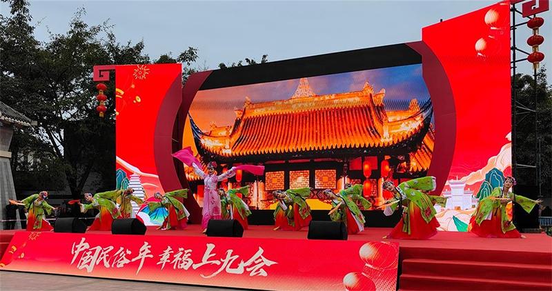 2月4日,“中国民俗年 幸福上九会”2025年孝泉上九会在德孝广场开幕,众多游客齐聚古镇,共赏民俗表演,体验民俗风情。