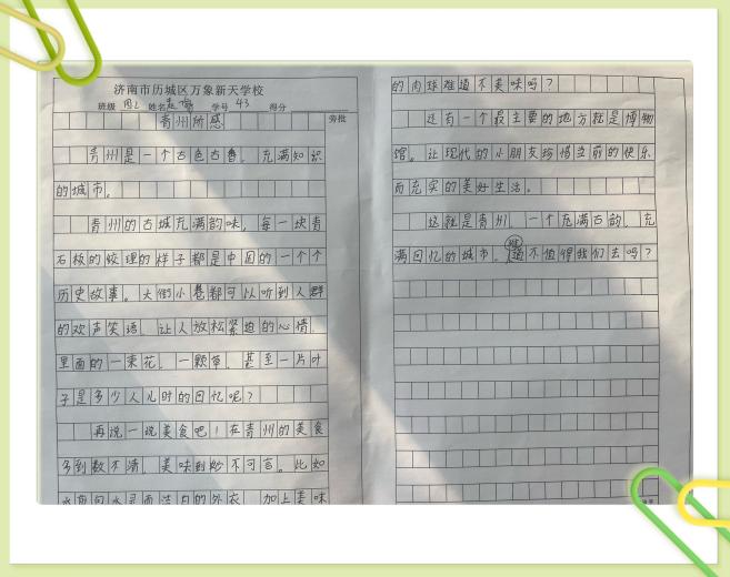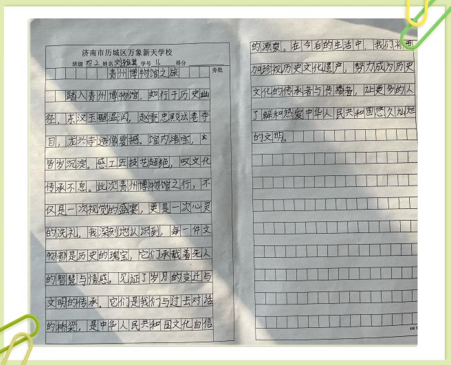 青州博物馆之旅,不仅是一场视觉与心灵的盛宴,是一次知识的深度探索,更是一场穿越古今的对话,孩子们将本次的所见所闻,以一名新时代少年的手笔重新阐述了千年文物的风韵和历史的痕迹,这也成为古今千年跨越历史的美好碰撞。