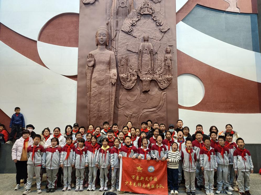 “读万卷书,行万里路”,济南市历城区万象新天学校四(2)中队全体学生为能更深刻体会这一道理,开展了一场别开生面的研学活动——穿越古今,与文物对话。在这空气中弥漫着温馨的日子,正式开启了一场知识、美学与情感的深度对话,同学们犹如穿越了千年的时光隧道,与历史的尘埃共舞,在文化的海洋中自由翱翔。