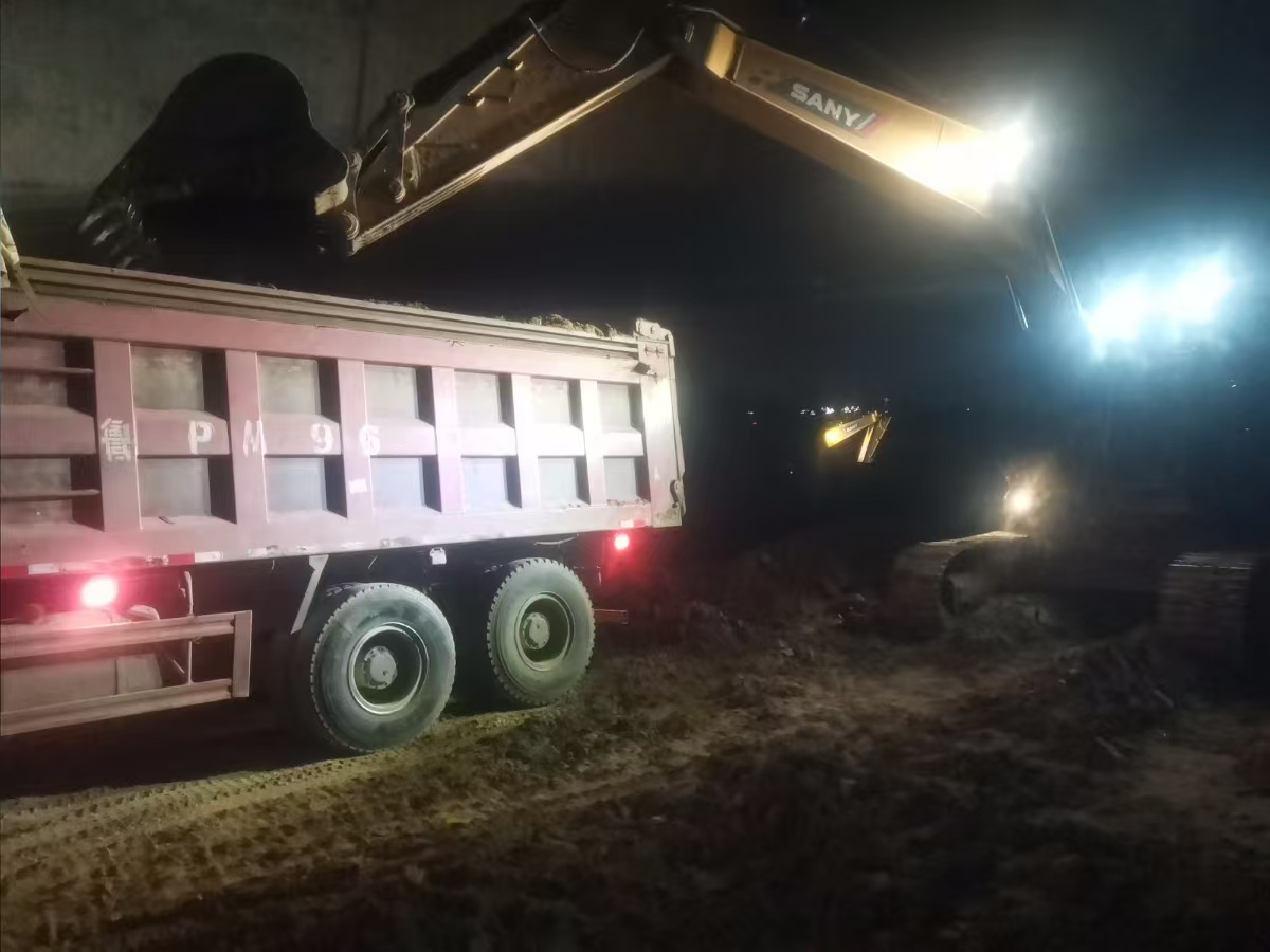 松桂大街徒骇河桥及附属工程夜间土方施工。