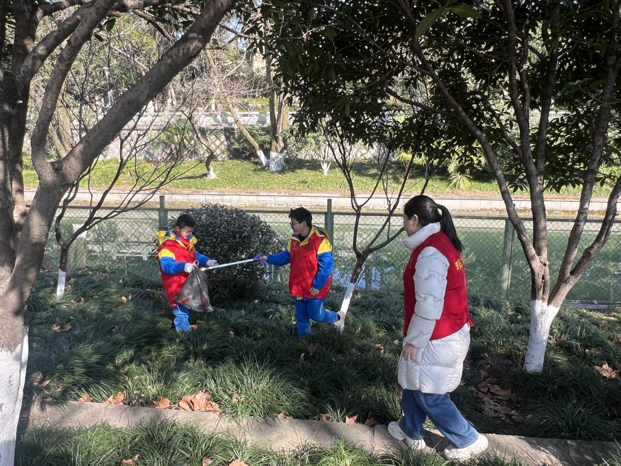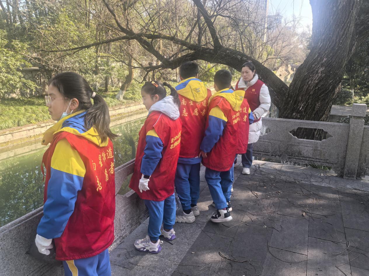 观看完视频后,孩子们在社区工作人员的带领下,兴致勃勃地前往龙山河凤山段开展巡河护河行动。初春的龙山河畔,微风拂面,柳枝轻扬,但河岸边零星散落的垃圾却与这美景格格不入。孩子们戴上手套,拿着垃圾袋,化身“环保小卫士”,仔细搜寻着河岸边的垃圾。纸巾、塑料袋、饮料瓶……他们不放过任何一个角落,认真地将垃圾捡起,分类放入不同的垃圾袋中。