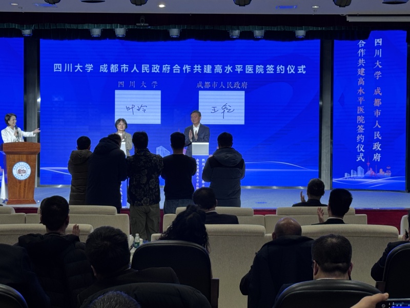 四川大学相关负责同志也表示,校地合作,在医疗、科研、人才培养和社会服务等方面都有显著优势,在推动双方综合实力提升,推动区域医疗和科研水平进步,推动医疗高新技术、科技产业发展等方面都有积极作用。“在此次合作中,我们将全力以赴,在共建中国特色世界一流大学的同时,放大华西医学品牌效应,探索打造卫生健康成都范本,为广大市民提供更加优质、高效、便捷的健康服务。”