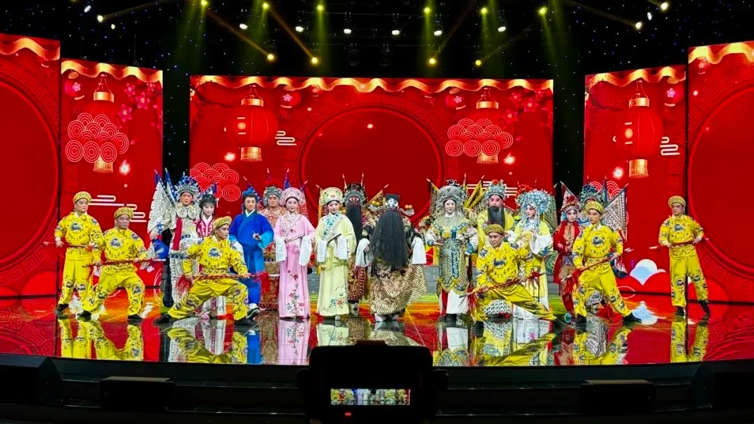 六、“中华泰山国泰民安”2025泰安市春节文艺晚会上,丰富多彩的《戏曲串烧》尽显民族艺术的独特魅力。