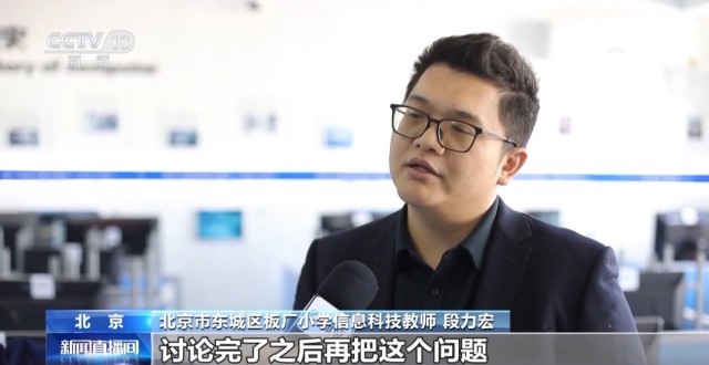 北京市东城区板厂小学信息科技教师 段力宏:因为现在的大模型,它不仅仅是针对我们教育事业,我们也觉得在这方面要注意适当保持和它的联系,建议如果遇到问题,孩子们之间还是要通过小组讨论,先是从人和人进行讨论,讨论完了之后再把这个问题抛给AI,去问一下它的结果。如果上来每个同学都是问AI,而不进行人与人的交流,以后就会造成交流隔离这一现象。