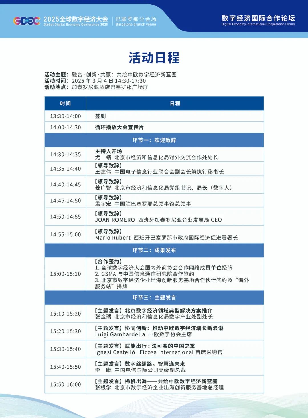 2025GDEC | 巴塞罗那分会场日程出炉,3月4日共见中欧数字合作新篇章!