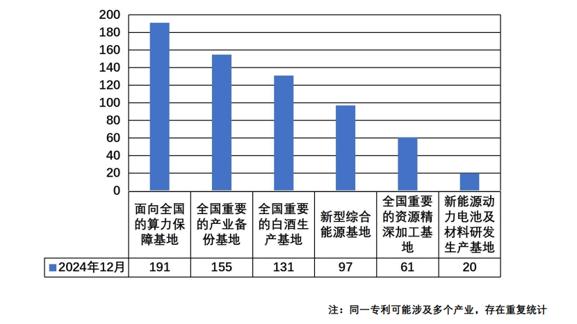 2024年12月,贵州省新型工业化六大产业基地授权专利产业分布情况