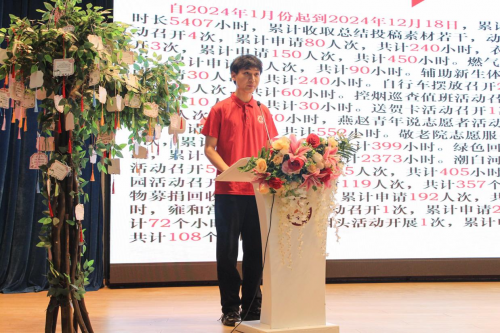雷锋连连长庞义康介绍雷锋月系列活动,在2024年生态环保、支农支教、敬老爱幼、赛事志愿等活动的基础上,今年将携手众多公益组织及社区开展更加丰富、全面的志愿服务。他呼吁广大同学积极投身公益事业,用青春志愿续写雷锋故事。