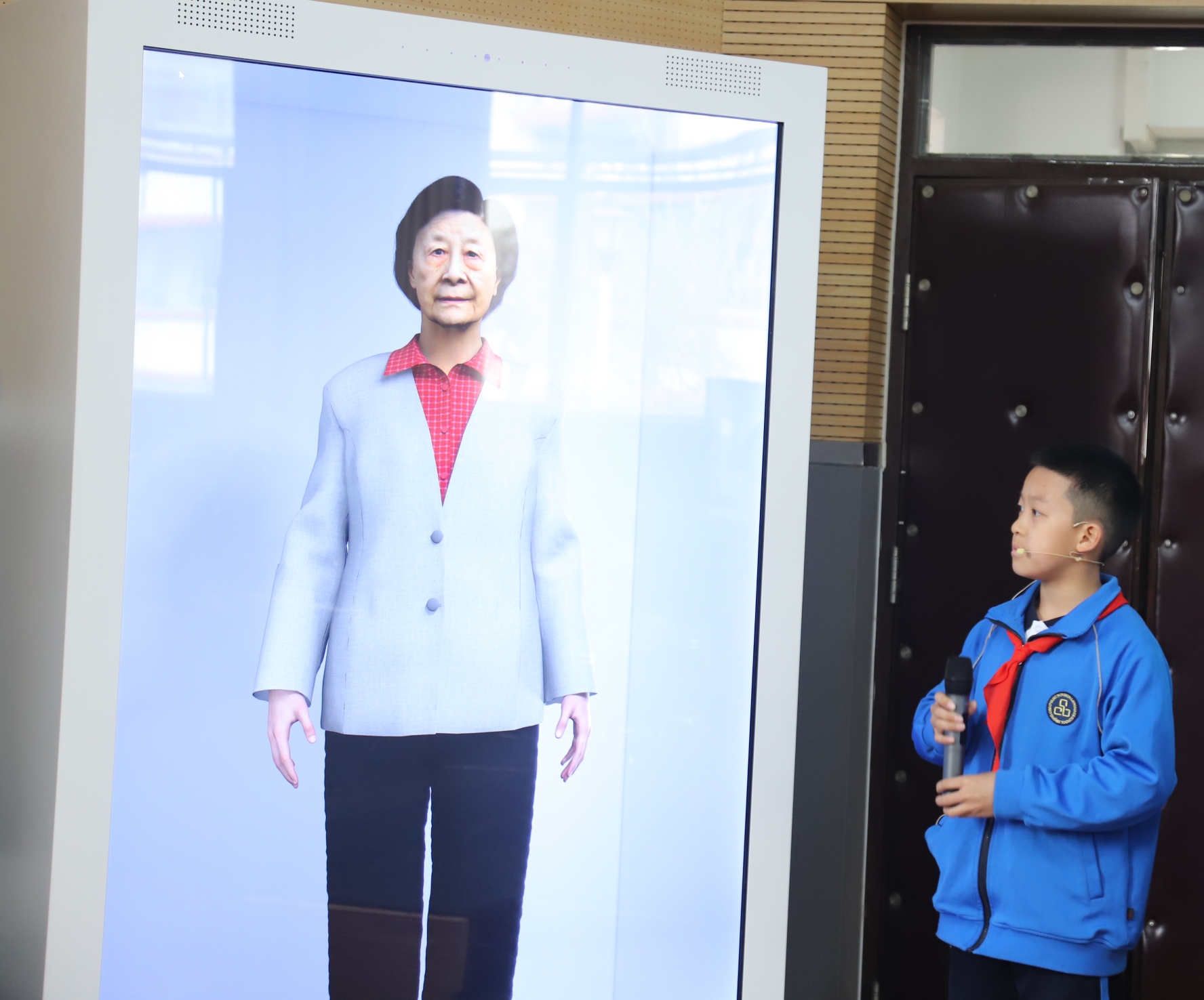 随后,学生们通过情景剧的形式,生动再现了学习党史知识的场景,展现了新时代青少年对红色文化的热爱和传承。备受尊敬的朝阳教育家、北京市朝阳外国语学校创始人郝又明先生的数字人形象惊艳亮相。学校通过数字人郝奶奶讲党史、国史和校史故事这一创新举措,将红色教育与现代科技完美融合,为朝外学子提供了一个更加生动、便捷的学习场域。这一高科技的产物不仅生动展现了现代科技的无限可能,更是对郝又明先生卓越教育生涯和无私奉献精神的崇高致敬。
