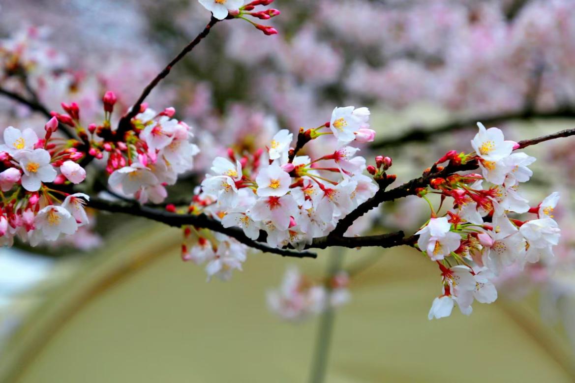 在园区南部,游客中心西北侧,是园内种植密度最高、规模最大的樱花集中区。这里,白色早樱与粉色晚樱交替盛放时,呈现出“层叠如云”的视觉效果。