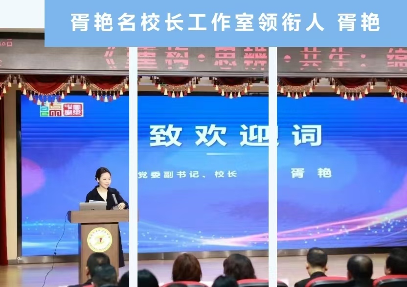 ↑绵阳市富乐实验中学党委副书记、校长,绵阳市胥艳名校长工作室领衔人胥艳致欢迎辞