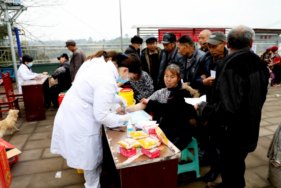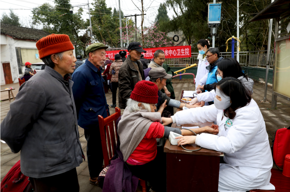 为优化公共卫生服务,推动医防融合,破解老年人体检报告“解读难”问题,3月17日,广安区人民医院下沉医疗专家团队——悦来中心卫生院家庭医生签约服务团队的医务人员来到悦来镇方寨村、廖家村为65岁以上老年人开展免费健康检查和体检报告解读,把优质的医疗资源送到基层。